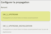 Par défaut, le mode « Amont » est activé. ! Si un point de départ est déjà sélectionné, le passage d’un mode à l’autre, exécute automatiquement la propagation à partir de ce point de départ. |