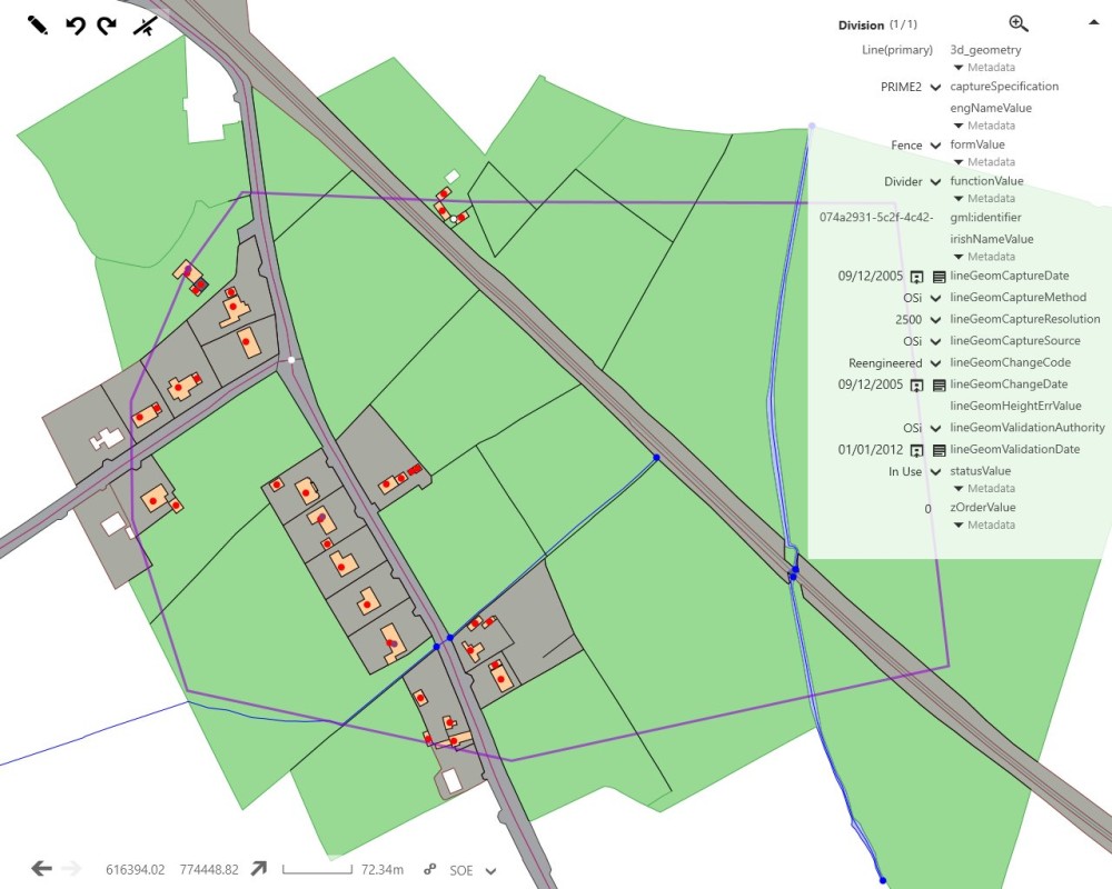 From here, you can view selected feature properties in the Properties panel and navigate the map.
