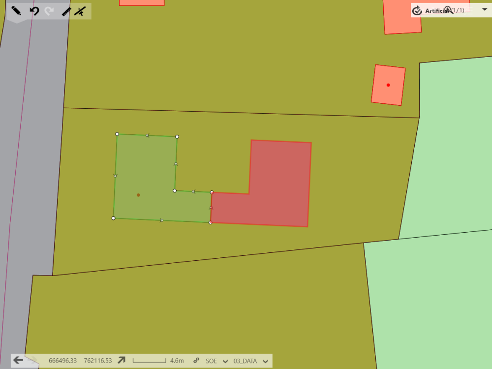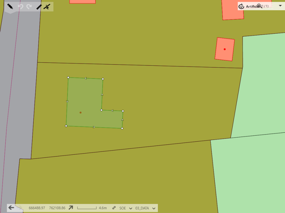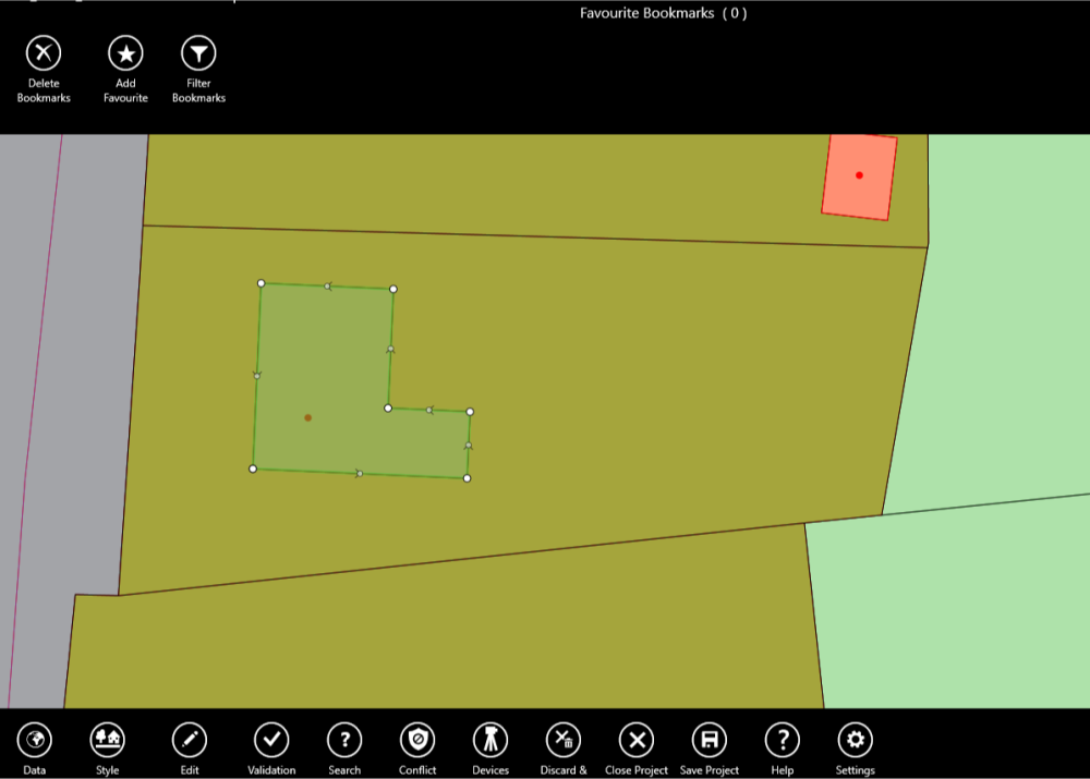The Mirror Tool can be used to directly mirror a selected line or boundary along a baseline you have selected. The mirrored object will be created in the same class as the source object, with all attributes cloned, except for dates.