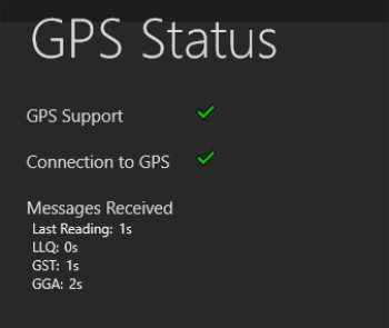 GPS Status panel Refer to any messages in this panel to resolve any issues. The messages received section indicates data that is received from the GPS device and when the tablet last received a message. This may help determine when there are problems with connectivity.