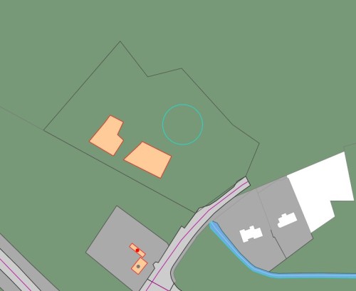 In this example, an area covered by a large vegetation polygon will be subdivided by digitising division lines and using the Split operation.