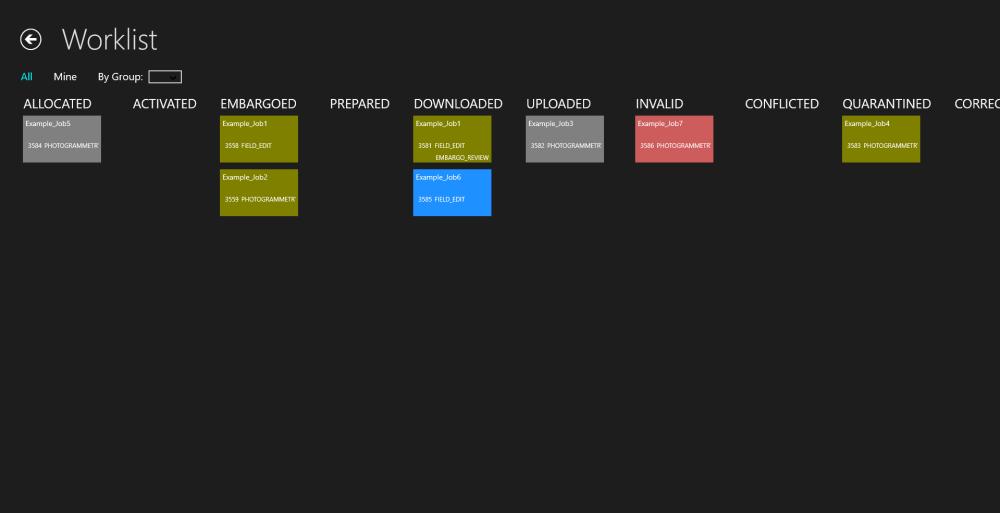 As groups are hierarchical, users can belong to more than one group. Any groups that the current user belongs to appear in the By Group filter list. Selecting a group filters the Worklist to only display jobs available to that particular group.