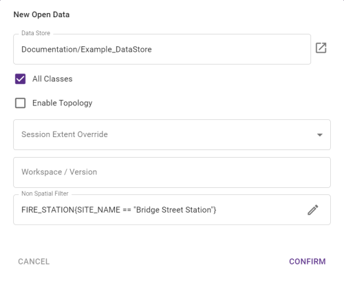 Note: A non-spatial filter on an Open Data Task uses the Source names for Classes and Attributes. A non-spatial filter on any other task uses the Target names for Classes and Attributes.