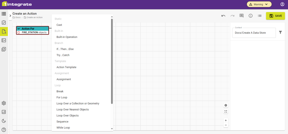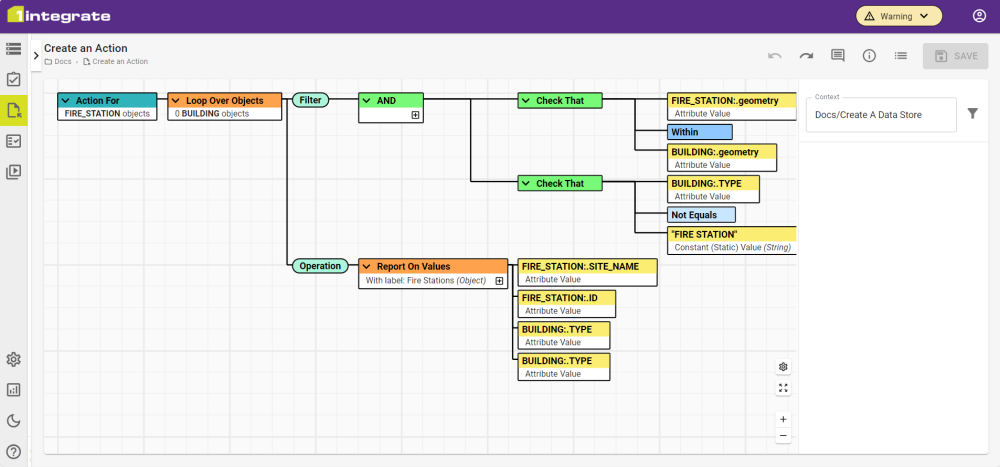 As with Rules, you will build up Actions node by node to create the logic you need for the data. Best practice is the same as with Rules, where you should be keeping them focused on a particular purpose rather than trying to do everything, all at once.