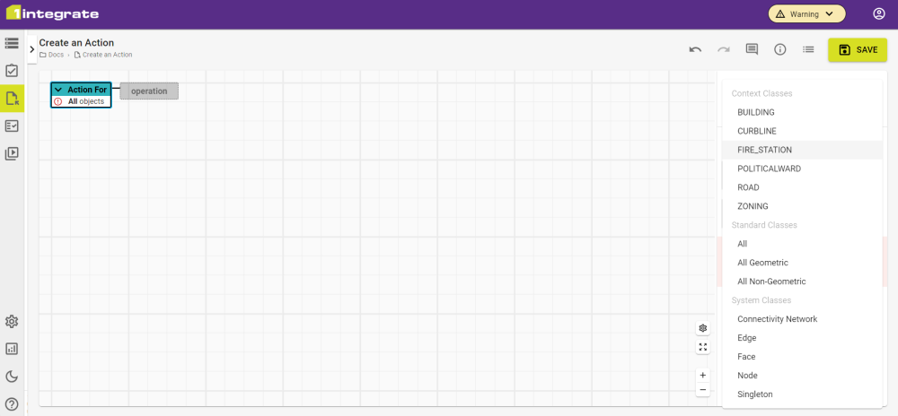 Actions are built in the same way as Rules are and can contain validation logic as well. However, their main purpose is to change, create, or report on data. Actions are still best when kept to their own purpose and can be paired with a Rule to filter out objects that don't need to be processed by the Action.