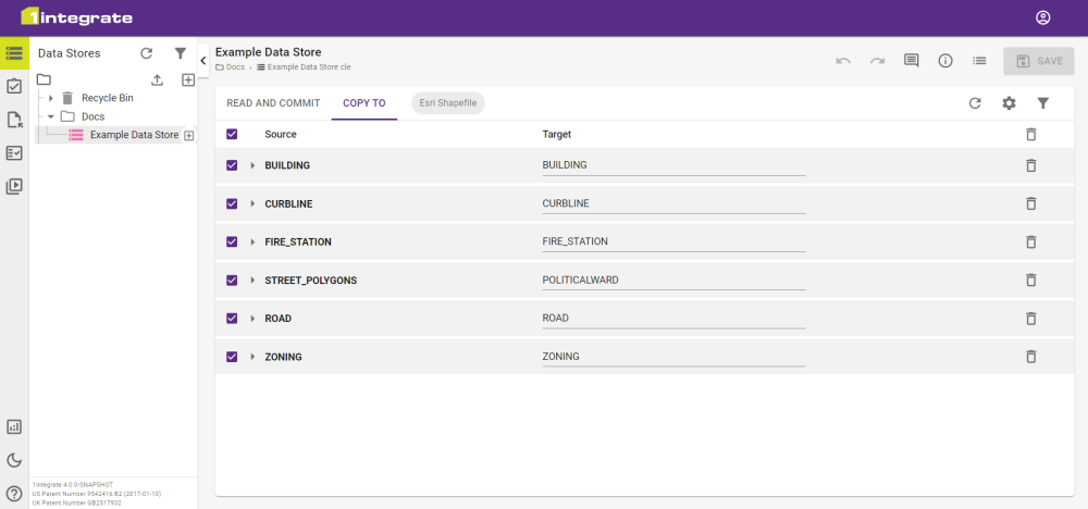 Note: The Copy To mapping for the Autodesk DWG Data Store has a fixed Schema. See the Autodesk DWG page to understand the mapping requirements before use.