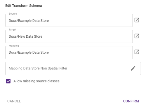 A Mapping Data Store containing the transformation definition. See Configuring a Mapping Data Store.