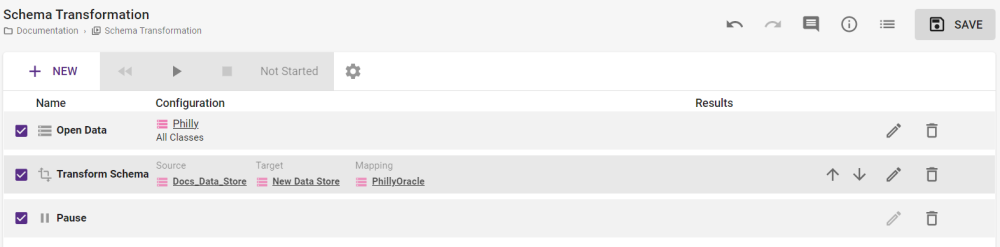 Note: Some conversions, such as using logic to analyse a value and split it across two attributes, will not be possible using Schema Transformation. For this, consider running Actions before or after the Schema Transformation task to operate on the data, using custom attributes added to the source or target Data Stores to temporarily hold these values, see Temporary Values.
