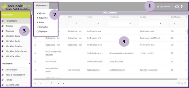 L’interface principale d’instruction du module se compose des éléments suivants :