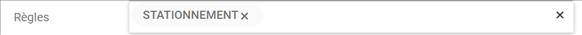 ► Règle : Vous pouvez sélectionner une règle pour laquelle cette redevance devra s’appliquer. Dans l’exemple ci-dessous, la redevance ne sera appliquée que pour la règle « Stationnement » :