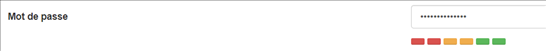 ► Mot de passe : permet la connexion au compte, le niveau de sécurité du mot de passe est présenté sous forme de pictogrammes allant du rouge au vert :