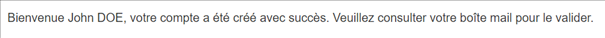 Une fois que ces informations auront été saisies, le message suivant s’affichera :