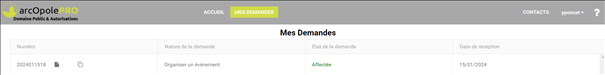 ► Affectée : votre demande a été affectée à un service instructeur ;