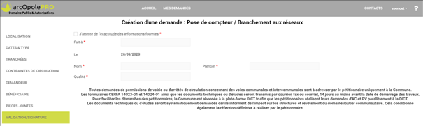 La dernière étape de la création de la demande consiste à attester de l’exactitude de la demande et à la dater :