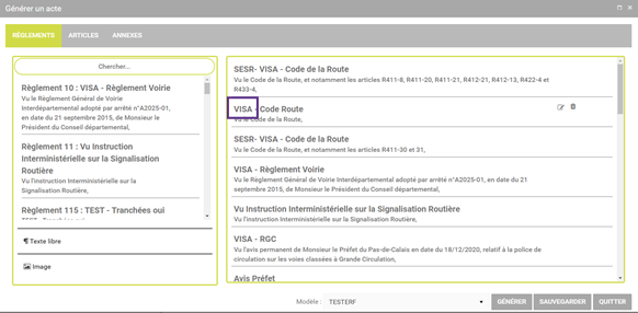 Le contenu généré dans l’acte final est présenté dans la partie droite de la