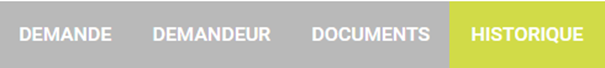 Vous pouvez à tout moment consulter l’historique d’une demande, sous la forme d’une vue temporelle, en cliquant sur l’onglet :