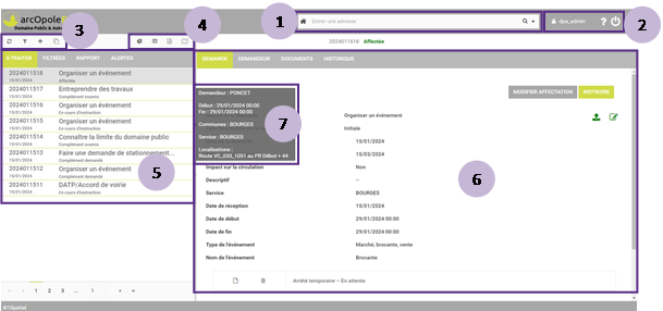 dossiers en cours (à traiter), des éléments filtrés et des rapports. |