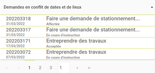 des demandes en conflit affiche les demandes selon les critères suivants :