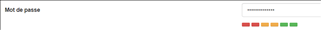 Mot de passe : permet la connexion au compte, le niveau de sécurité du mot de passe est présenté sous forme de pictogrammes allant du rouge au vert :