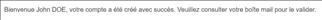 Une fois que ces informations auront été saisies, le message suivant s’affichera :