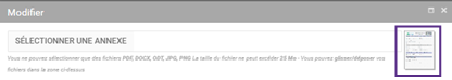 L’onglet Annexes contient l’intégralité des annexes proposées dans les actes générés par le module aOp DPA. Ces documents joints peuvent être ajoutés au format image, document ou pdf.