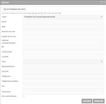 Possibilité d’associer un logo à un gestionnaire (interface d’administration : ajout, suppression, modification). Ouvrir la fiche pour la modifier et cliquer sur :