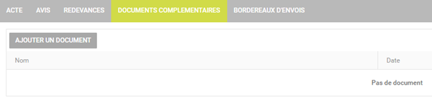 Dans l’onglet « Documents complémentaires », il est possible de joindre tout type de document à l’acte par téléchargement :