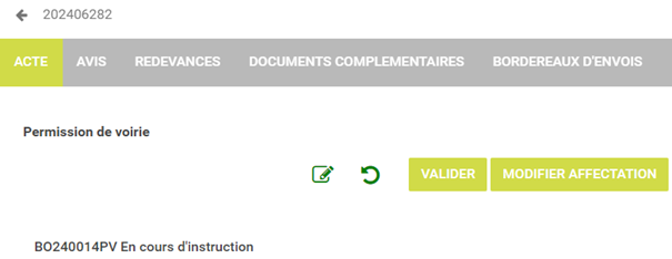 Une fois que tous les actes du dossier sont validés et signés, l’instructeur peut valider le dossier complet.