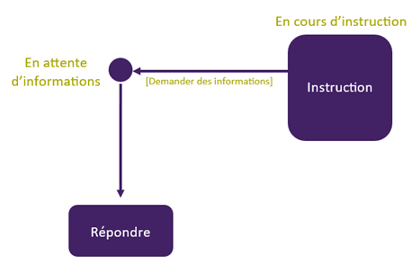 Cette action permet à l’instructeur d’indiquer qu’il est en attente d’informations complémentaires de la part du demandeur. Cette demande d’information peut être transmise automatiquement par le biais de l’interface de gestion des demandes si elle est mise en place. Si ce n’est pas le cas, l’action permettra de changer le statut du dossier.