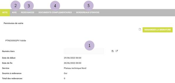 . L’interface de gestion d’un acte se présente