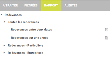 Des rapports relatifs au calcul des redevances sont intégrés au module dans l’onglet « Rapport » :