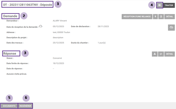 Accès aux documents associés à la déclaration et à son traitement. Cela permet également de gérer les