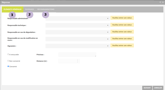 assistant pour saisir er compléter la réponse à apporter à une déclaration (le