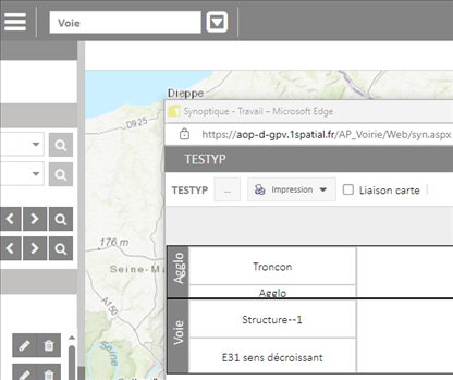 Liaison Carte : Si vous cochez « Liaison carte » et en activant la fonction « Carte », vous aurez la vue « Carte » du synoptique :