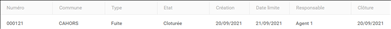 Un double clic sur une ligne du tableau permet d’accéder à la fiche d’informations de l’intervention. |