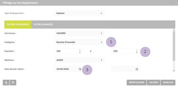 arcOpole PRO Intervention dispose d’un outil de filtrage sur les équipements.
