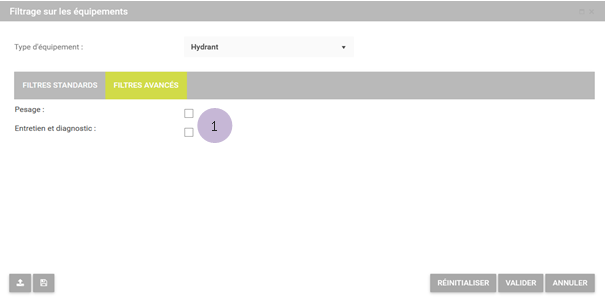 Choisit l’équipement concerné. Accède aux filtres spécifiques à cet équipement. |