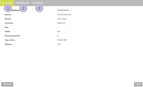 Onglet « Consultation » : Cet onglet présente l’ensemble des informations associés à un équipement. |