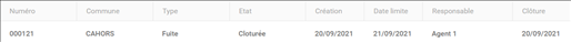 Un double clic sur une ligne du tableau permet d’accéder à la fiche d’informations de l’intervention. |