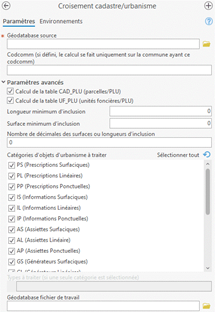 - En mode outil, cocher ce paramètre pour calculer la table CAD_PLU (calcul des intersections entre parcelles et objets d’urbanisme).