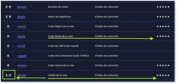 FONCIER 2022 (Cadastre), seuls le code RIVOLI et le CODCOMM font référence à la
