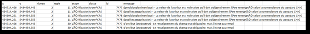 ► L’onglet « Carte » affiche le repérage graphique des erreurs :