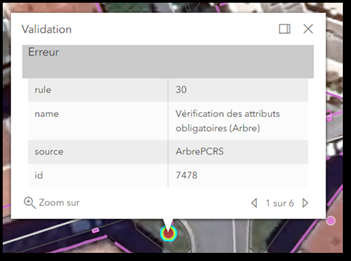 sur le ponctuel d’erreur, on retrouve les détails des anomalies :