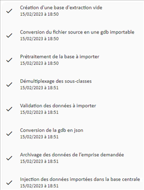 liste de tous les imports/exports qui ont été lancés sur la BD d’arcOpole PRO