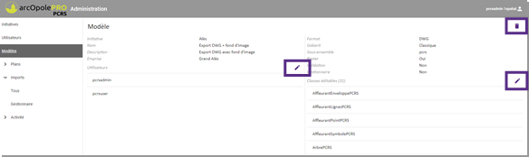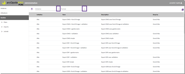 définissant l’export sont listés en cliquant sur le modèle concerné dans la