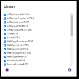 les classes d’objets extraites pouvant être mises à jour en actionnant le boutons