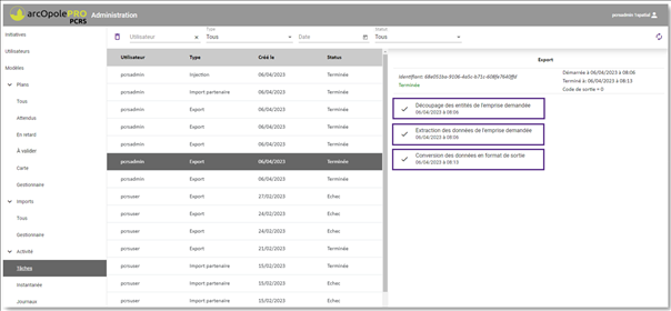 dans l’onglet Plans/Tous, sur la tâche d’export Terminée