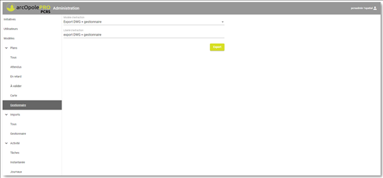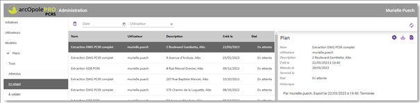 Plans / Tous, permet à l’Administrateur d’afficher tous les exports réalisés