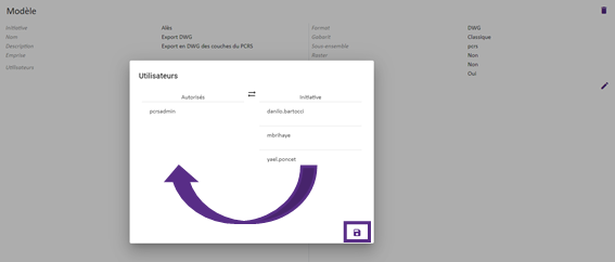 par un glisser-déposer dans le cadre Utilisateurs et un enregistrement avec le bouton