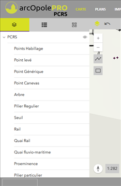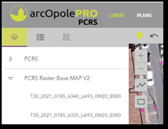 d’afficher la liste des couches du PCRS Vecteur ou des dalles du PCRS Raster et